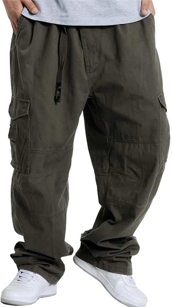 men Baggy Cargo Pants Casual Loose Fit Elastic Waist Cotton Twill Cargo Pants