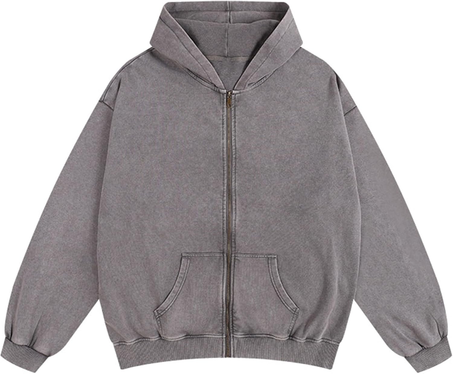 men Oversized Sweatshirt Zip Up Hoodie Solid Wash Old Craft Basic Jackets Unisex Heavyweight Casual Sweatshirts